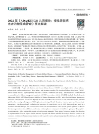 2022版《ADA/KDIGO共识报告:慢性肾脏病患者的糖尿病管理》要点解读