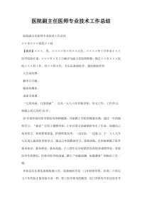 医院副主任医师专业技术工作总结