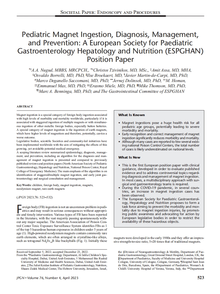 ESPGHAN意见书:儿童磁性异物摄入的诊断,管理和预防