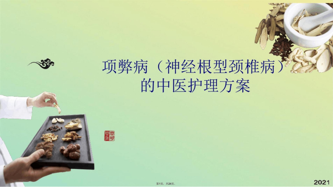 首页护理专题中医特色护理颈椎病中医护理方案(共24张PPT)