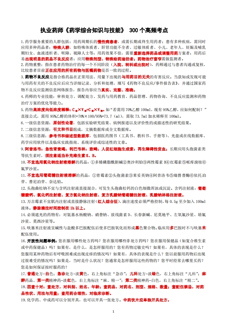 首页药剂药学药师考试《药学综合知识与技能》个高频考点