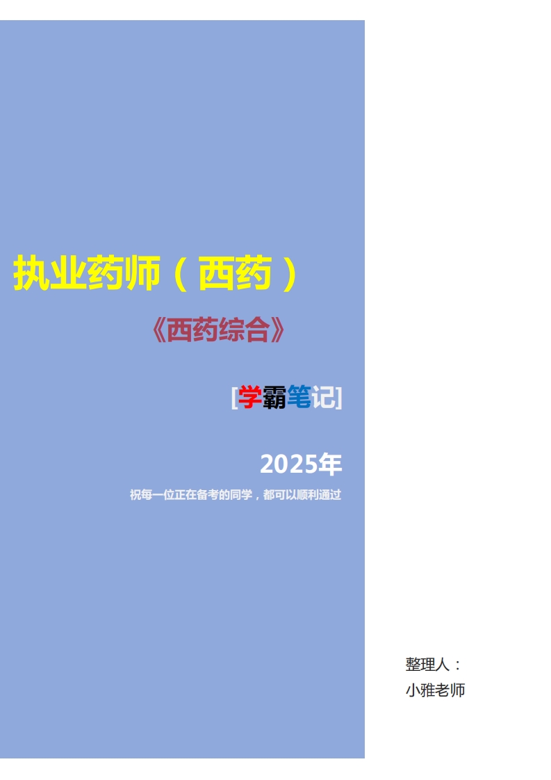 首页药剂药学药师考试年《西药学综合》学霸笔记