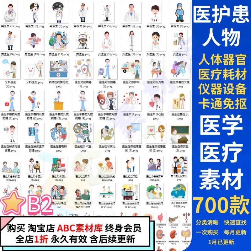 医学医疗科研绘图素材免扣医患人体器官仪器设备医生护士卡通PPT